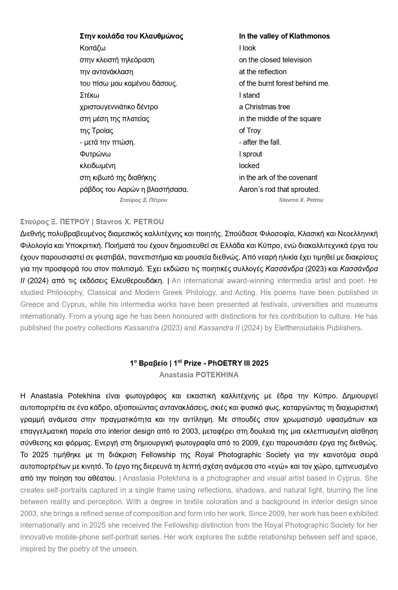 Συγχαρητήρια σε όλους όσοι διακρίθηκαν και ευχόμαστε σε όλους σας καλή επιτυχία στην επόμενη έκθεσή μας, PhOETRY IV – 2026!