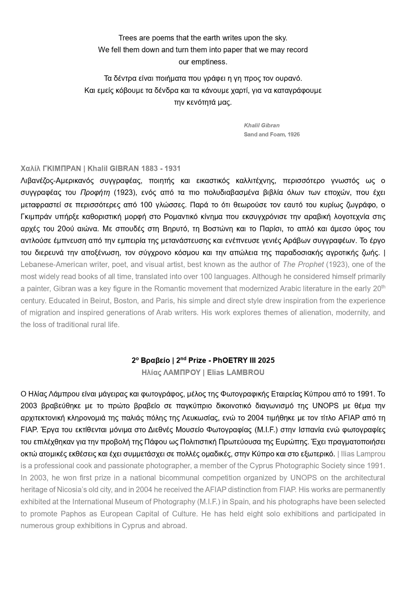 KHALIL GIBRAN 1883 - 1931 LBN/USA . Poem: Trees are poems… | Τα δέντρα είναι ποιήματα…