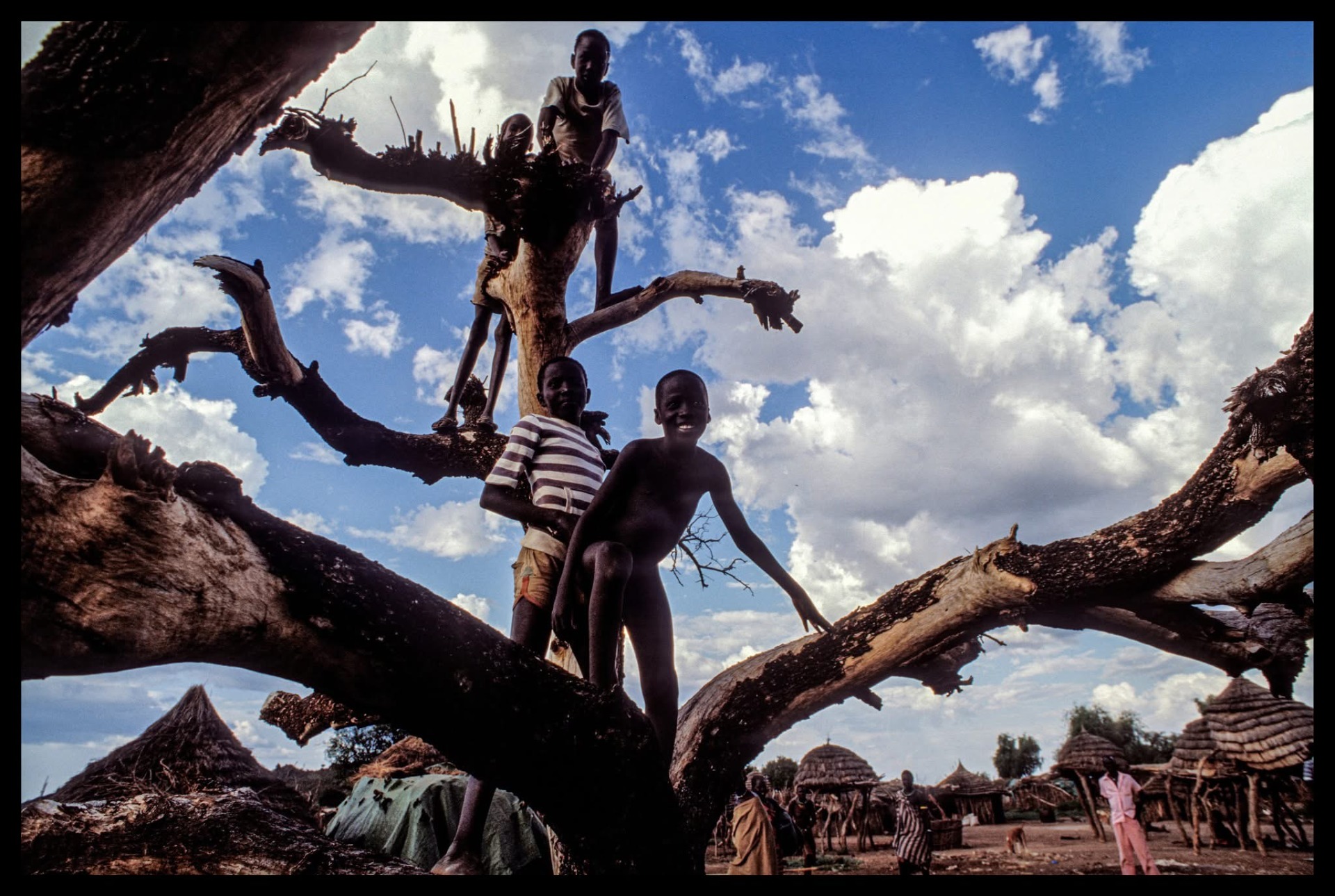 Children of the Toposa ethnic group playing in Narus, in the area controlled by the SPLA/SPLM (Sudan People's Liberation Army/Movement) in Eastern Equatoria, South Sudan, during the war with Sudan, 1995.